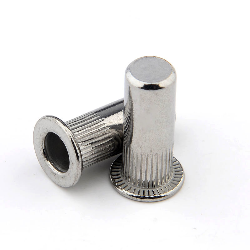平頭盲孔拉鉚螺母,工業(yè)領(lǐng)域最早也是最常用的拉鉚螺母,在某些不易加工六角孔處應(yīng)用,帽檐下壓花和柱體豎條紋提高了鉚螺母的防漏防轉(zhuǎn)效果,拉鉚螺母常被人們叫做鉚螺母或者拉帽等,主要應(yīng)用在金屬制造等工業(yè)領(lǐng)域,充當(dāng)?shù)闹饕饔脼榫o固金屬的緊固作用。目前產(chǎn)品銷售常用的有不銹鋼拉鉚螺母和鐵鍍彩鋅拉鉚螺母。應(yīng)用領(lǐng)域:家具制造、建材裝飾、制冷設(shè)備、汽車制造等等領(lǐng)域。