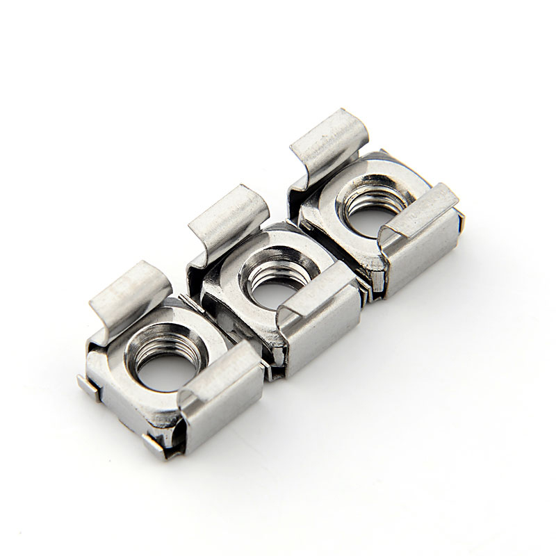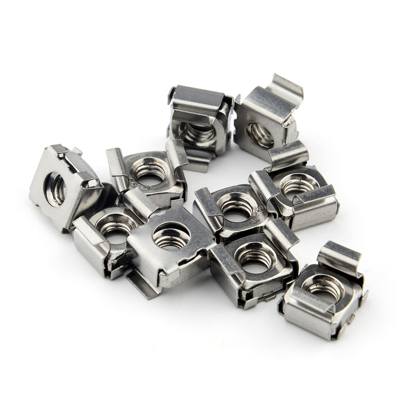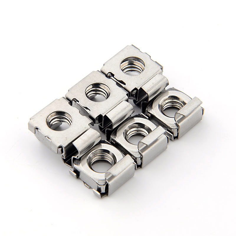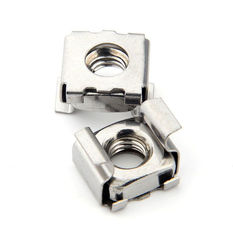 卡式螺母也叫方孔式螺母,籠式螺母,機(jī)柜螺母,叫法不一樣,意思都是一樣??ㄊ铰菽甘怯梢粋€類似于彈簧性質(zhì)的卡槽和一個四方螺母組合而成。根據(jù)材質(zhì)不同分為CN全碳鋼卡式螺母、CNS半不銹鋼卡式螺母及CNSS全不銹鋼卡式螺母三種 。 碳鋼部分的表面處理有: 藍(lán)白鋅、彩鋅和亮鎳供客戶選擇。 具體規(guī)格尺寸根據(jù)所用板材厚度選所需擇規(guī)格尺寸,對應(yīng)板材沖孔尺寸 。