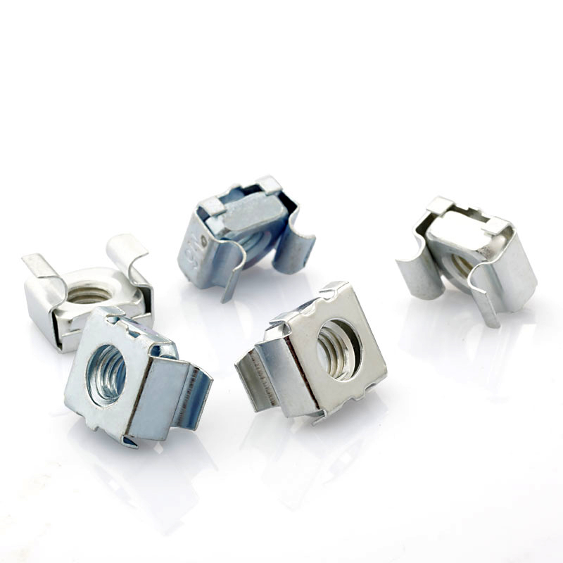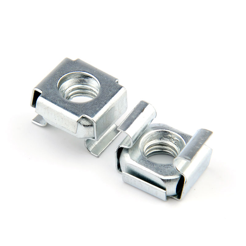 卡式螺母也叫方孔式螺母,籠式螺母,機柜螺母,叫法不一樣,意思都是一樣??ㄊ铰菽甘怯梢粋€類似于彈簧性質(zhì)的卡槽和一個四方螺母組合而成。根據(jù)材質(zhì)不同分為CN全碳鋼卡式螺母、CNS半不銹鋼卡式螺母及CNSS全不銹鋼卡式螺母三種 。 碳鋼部分的表面處理有: 藍白鋅、彩鋅和亮鎳供客戶選擇。 具體規(guī)格尺寸根據(jù)所用板材厚度選所需擇規(guī)格尺寸,對應板材沖孔尺寸 。