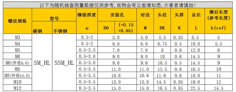 通孔小頭半六角拉鉚螺母區(qū)別: