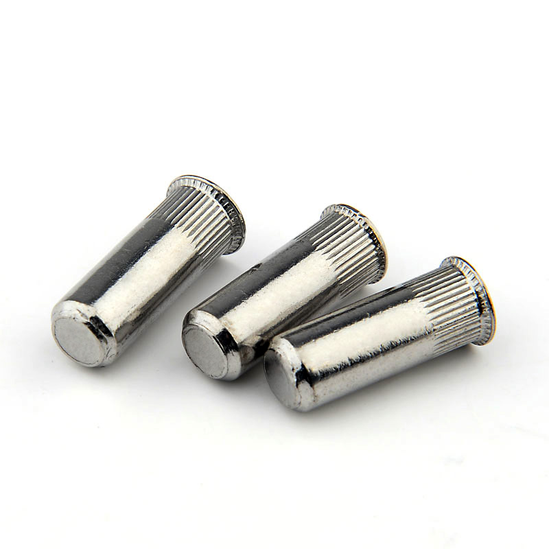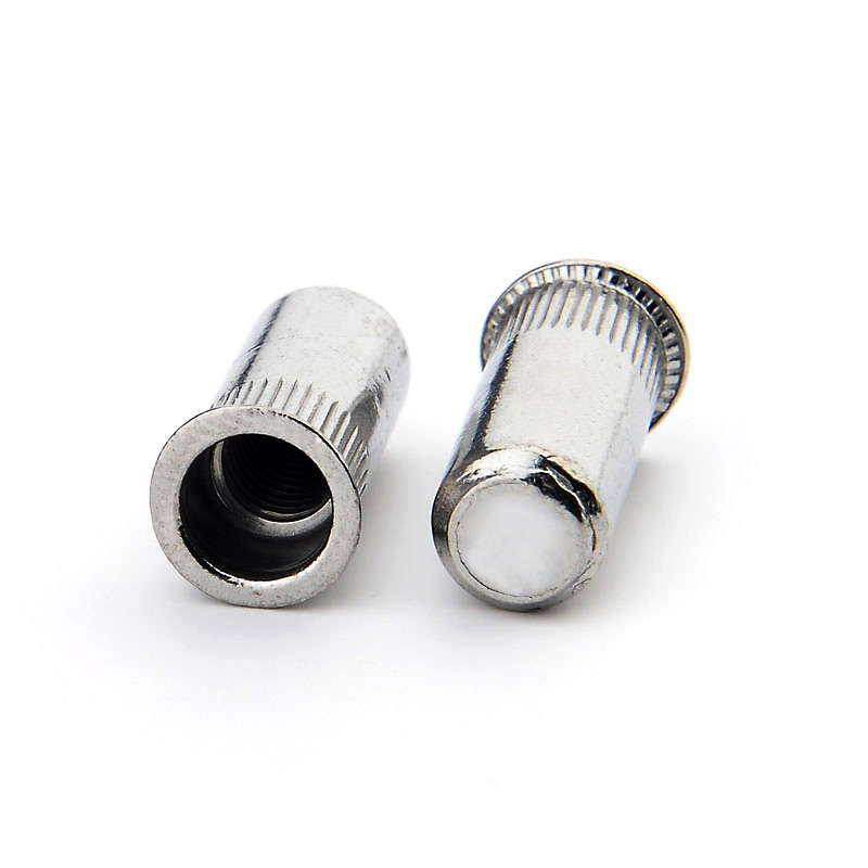 小頭豎紋盲端拉鉚螺母,工業(yè)領(lǐng)域最早也是最常用的拉鉚螺母,在某些不易加工六角孔處應(yīng)用,帽檐下壓花和柱體豎條紋提高了鉚螺母的防漏防轉(zhuǎn)效果,拉鉚螺母常被人們叫做鉚螺母或者拉帽等,主要應(yīng)用在金屬制造等工業(yè)領(lǐng)域,充當(dāng)?shù)闹饕饔脼榫o固金屬的緊固作用。目前產(chǎn)品銷售常用的有不銹鋼拉鉚螺母和鐵鍍彩鋅拉鉚螺母。應(yīng)用領(lǐng)域:家具制造、建材裝飾、制冷設(shè)備、汽車制造等等領(lǐng)域。