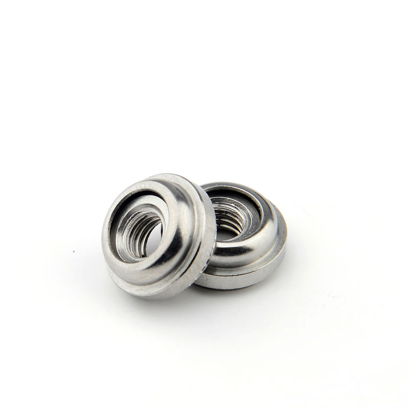 浮動螺母是應(yīng)用于薄板或鈑金上的一種組合螺母,外形呈圓形,里面鑲嵌一個(gè)螺母,組合后能浮動。外殼一端帶有壓花齒及導(dǎo)向槽。
